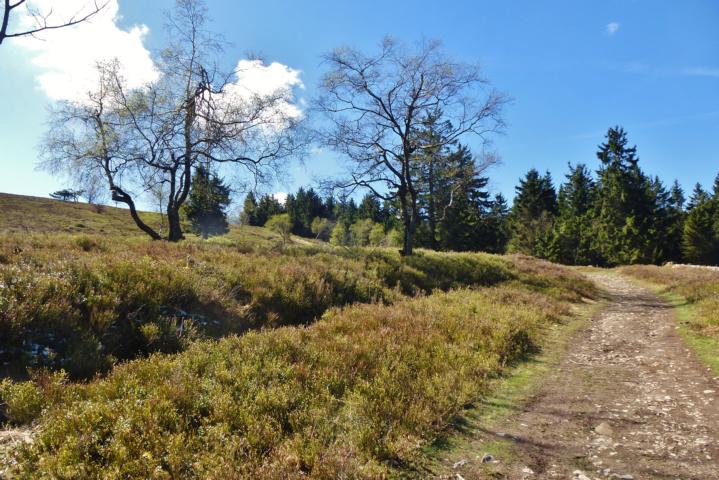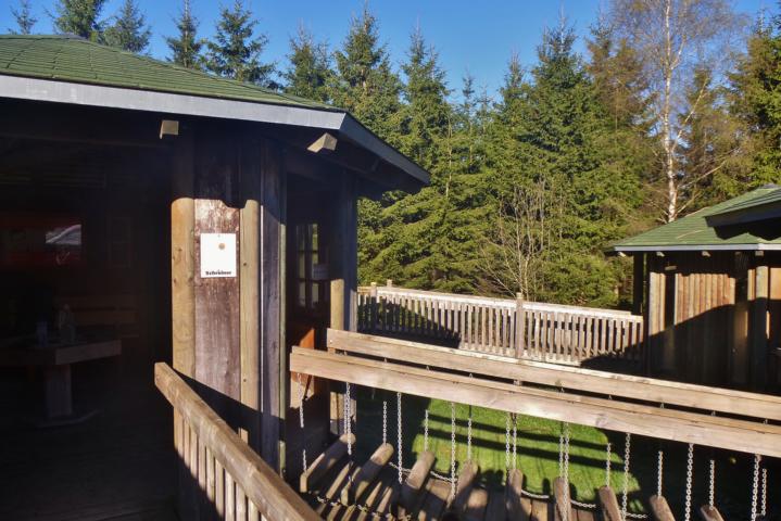 Wanderparkplatz am Kahlen Asten. Hier ist natürlich deutlich mehr los, als noch gestern. Gestern habe ich tatsächlich wenig Leute getroffen, aber der Kahle Asten lockt natürlich die Leute an. Zu recht, wie ich schon beim Aufstieg durch das hübsche Wäldchen bemerke. Oben auf dem Berg bietet sich dann eine tolle Heidelandschaft. Viele Infotafeln informieren über die klimatischen Besonderheiten der Region. Im Astenturm fülle ich Wasser auf und mache danach ein Päuschen in der Sonne. Danach geht es weiter nach Neuastenberg und Langewiese. Hier besticht der Rothaarsteig nicht gerade durch Schönheit, es ist einiges an Asphalt dabei. Kurz vor Langewiese entspanne ich meine strapazierten Füße in einer Kneippanlage an einem Barfußpfad. Hinter Langewiese geht es glücklicherweise wieder mit schöner Landschaft weiter und ich bekomme wieder schöne Aussichten geboten. Wenig später teilt sich der Weg in zwei Varianten. Ich wähle die offizielle, welche an verschiedenen Skulpturen im Wald vorbei führt. Ziemlich bald geht der Weg über Stege in den Wald hinein und man erreicht nach etwas Wandern eine Hängebrücke. Die ist als kleines Extra eingebaut, ist nicht Teil des Weges, macht aber Spaß! Der Rothaarsteig geht weiter und schon bald habe ich mein heutiges Tagesziel erreicht. Die Schutzhütte an der Millionenbank.