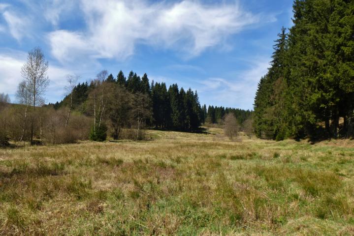 Ich erreiche das Schwarzbachtal auf dem Rothaarsteig.